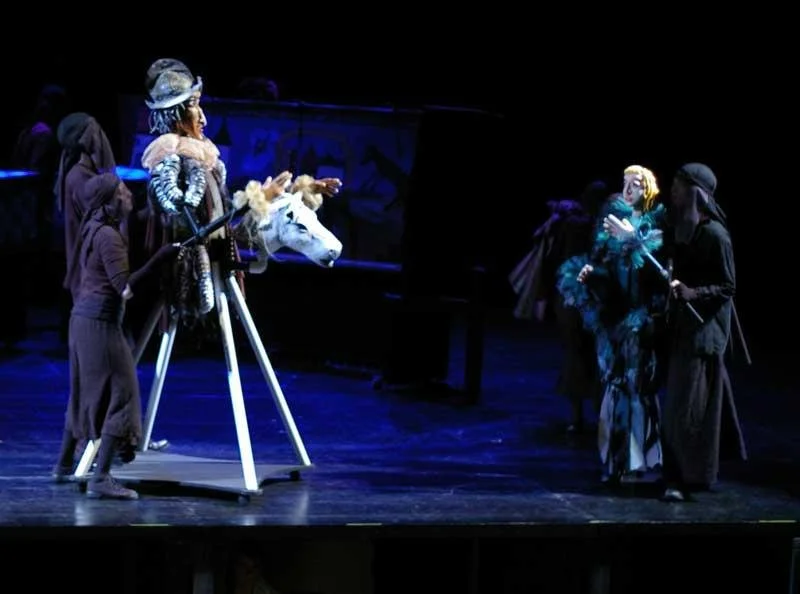 Linda performing Don Quixote with Puppetsweat in Master Peter's Puppet Show at the Kennedy Center, DC.